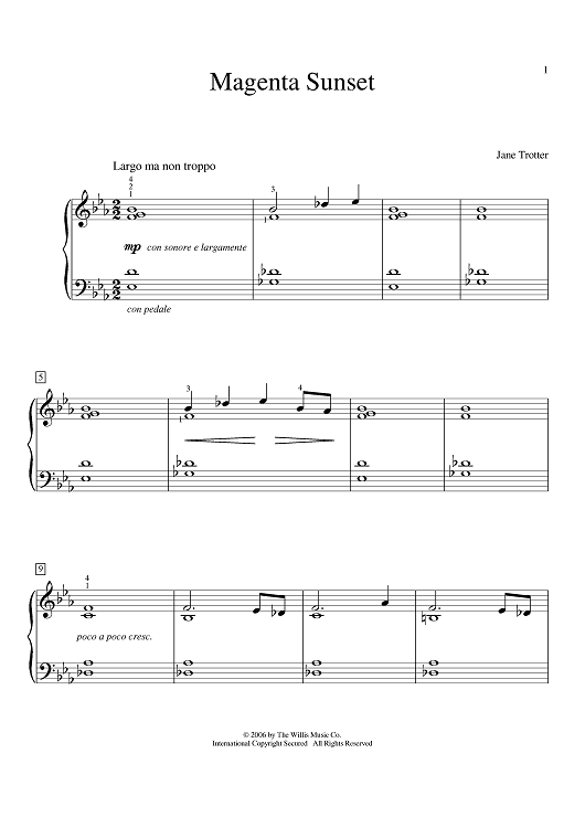 Digital Sheet Music for Magenta Sunset by Jane Trotter scored for Piano; id:391733