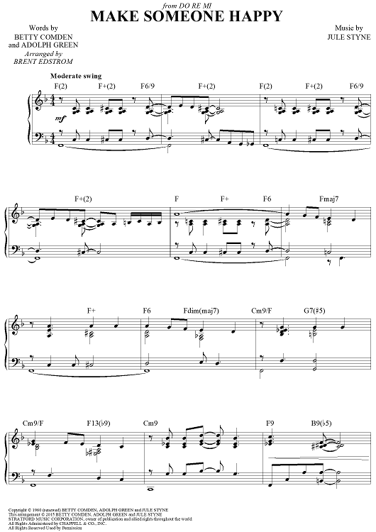 Digital Sheet Music for Make Someone Happy by Jule Styne, Betty Comden, Adolph Green, Brent Edstrom scored for Piano Solo; id:460013