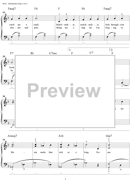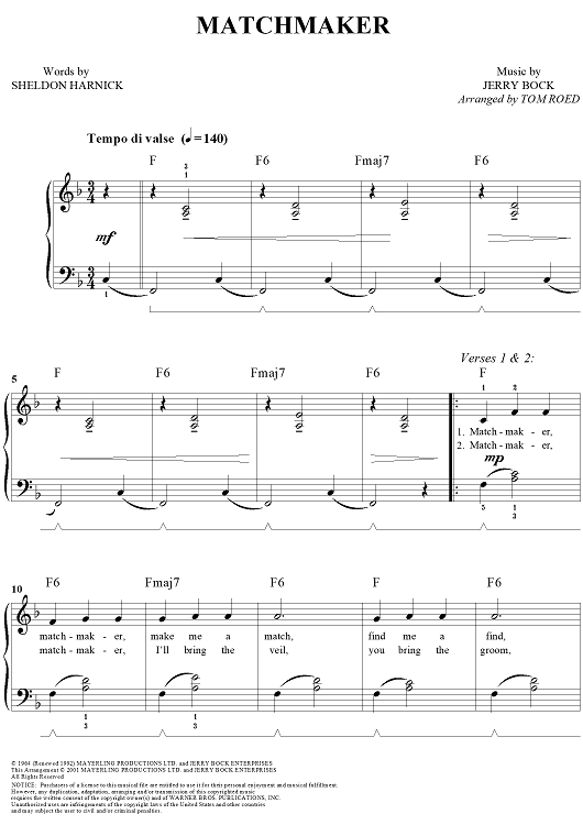 Digital Sheet Music for Matchmaker by Tom Roed, Jerry Bock, Sheldon Harnick scored for Easy Piano/Vocal; id:289490