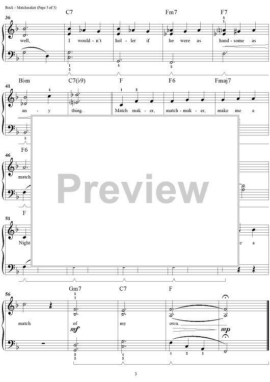 "Matchmaker" Sheet Music by Jerry Bock