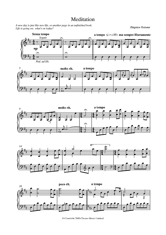 Digital Sheet Music for Meditation by Zbigniew Preisner scored for Piano; id:382552
