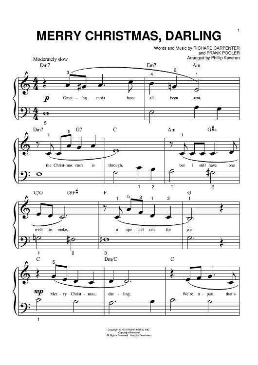 "Merry Christmas, Darling" Sheet Music by The Carpenters