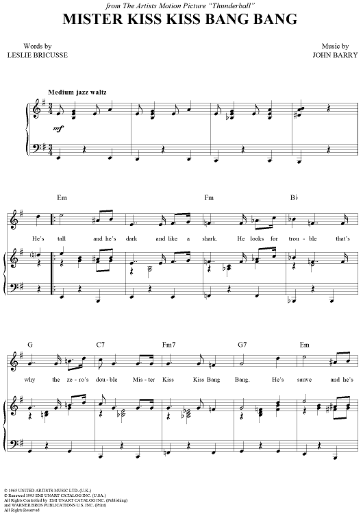 "Mister Kiss Kiss Bang Bang" Sheet Music by John Barry