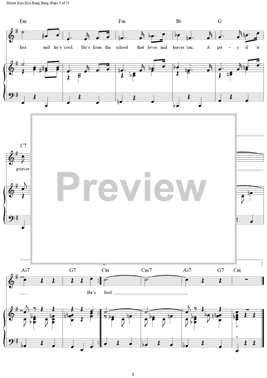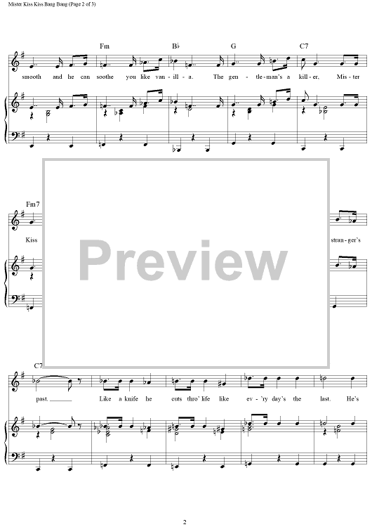 Digital Sheet Music for Mister Kiss Kiss Bang Bang by Leslie Bricusse, John Barry scored for Piano/Vocal/Chords; id:109903
