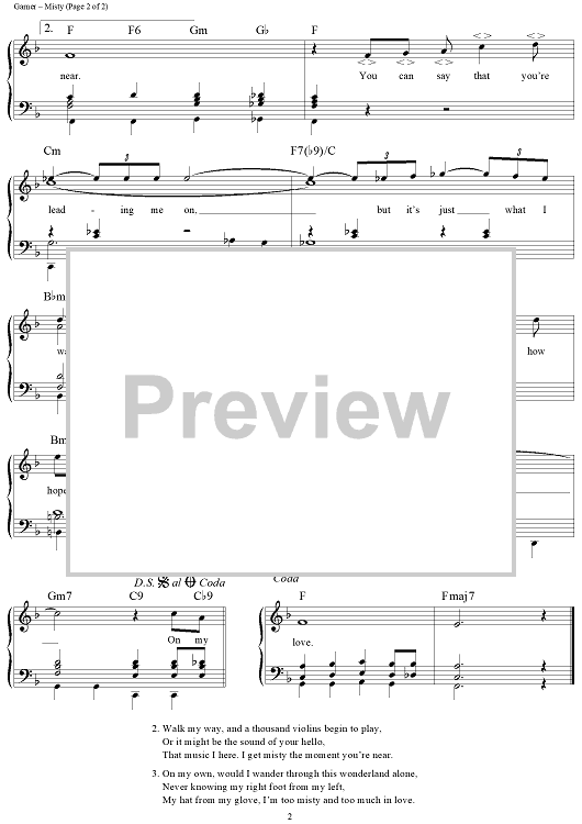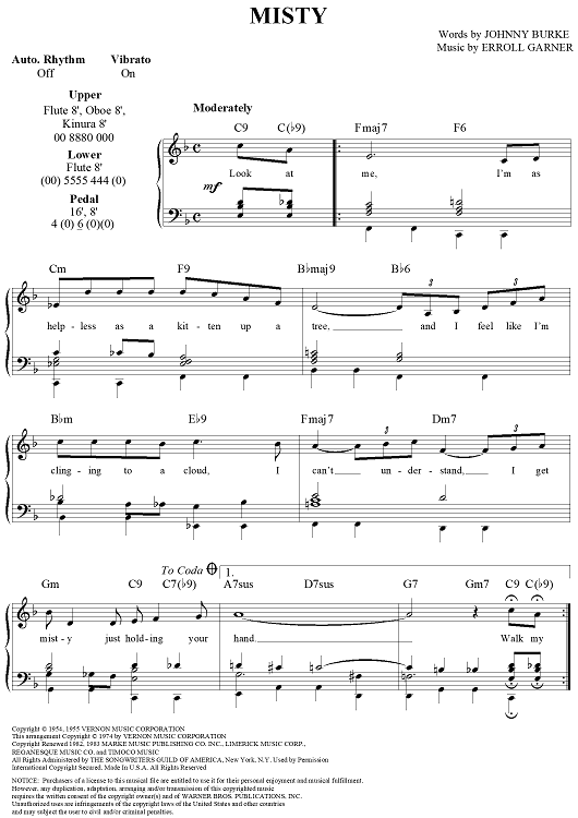 Digital Sheet Music for Misty by Erroll Garner, Johnny Burke scored for Easy Organ/Vocal; id:118882