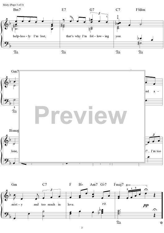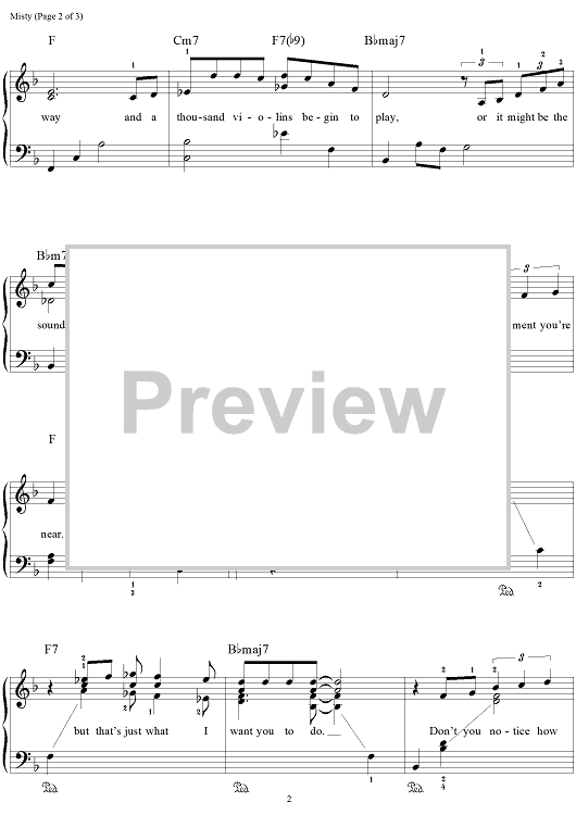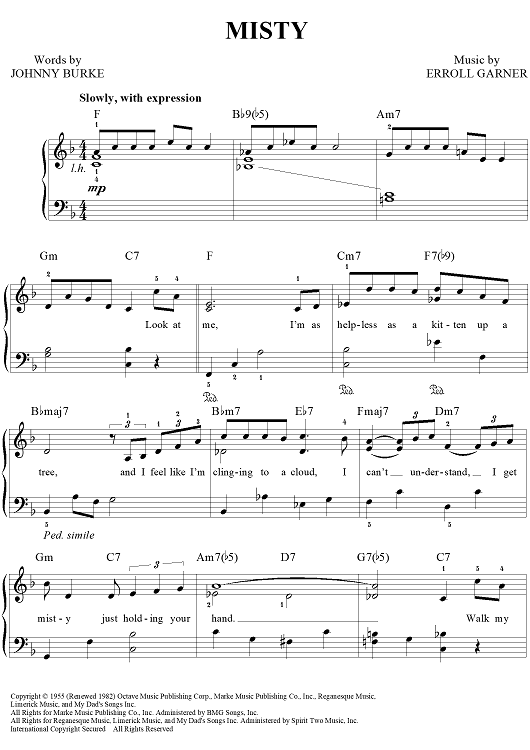 Digital Sheet Music for Misty by Johnny Mathis, Erroll Garner, Sarah Vaughan, Johnny Burke, Ray Stevens scored for Easy Piano/Vocal/Chords; id:373953