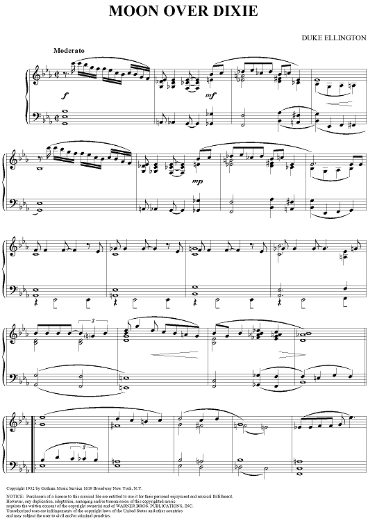 Digital Sheet Music for Moon Over Dixie by Duke Ellington scored for Piano Solo; id:235093