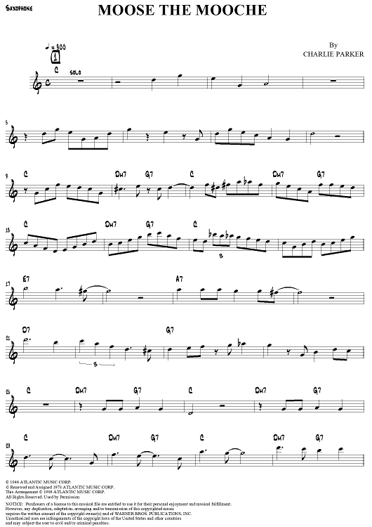 Digital Sheet Music for Moose the Mooche by Charlie Parker, Joshua Redman scored for Saxophone Solo; id:308784