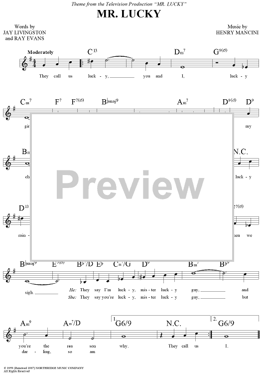 Digital Sheet Music for Mr. Lucky by Henry Mancini, Jay Livingston, Ray Evans scored for Lead Sheet; id:95107