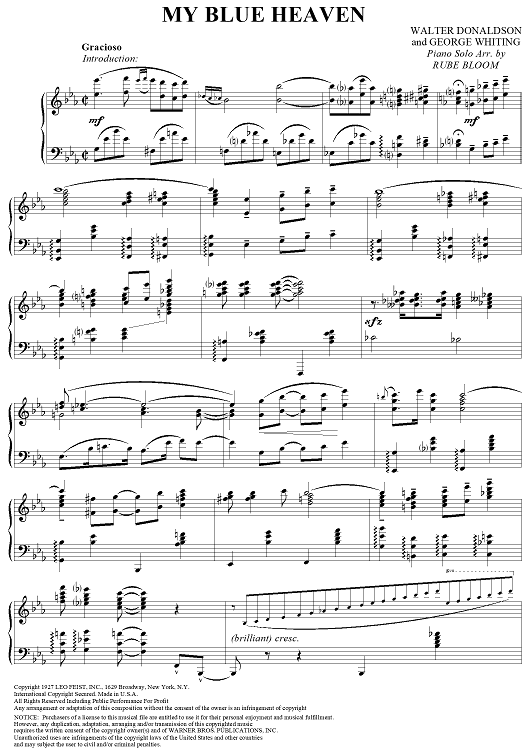 Digital Sheet Music for My Blue Heaven by Walter Donaldson, George Whiting, Rube Bloom scored for Piano Solo; id:355057
