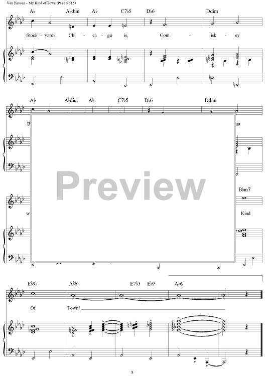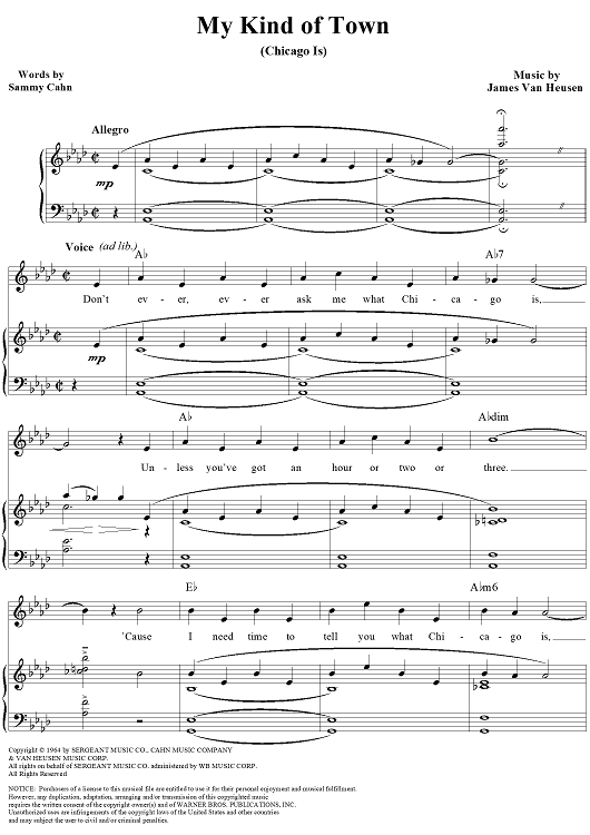 Digital Sheet Music for My Kind of Town (Chicago Is) by Frank Sinatra, Sammy Cahn, Jimmy Van Heusen scored for Piano/Vocal/Chords; id:109970