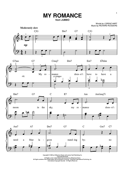 Digital Sheet Music for My Romance by Bill Evans, Richard Rodgers, Tony Bennett, Lorenz Hart scored for Easy Piano; id:373954