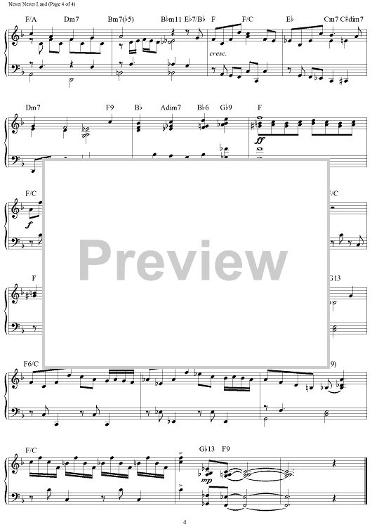 Digital Sheet Music for Never Never Land - from Peter Pan by Jule Styne, Betty Comden, Adolph Green, Brent Edstrom scored for Piano Solo; id:465682