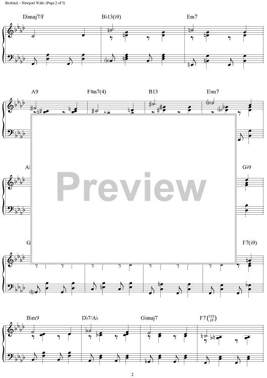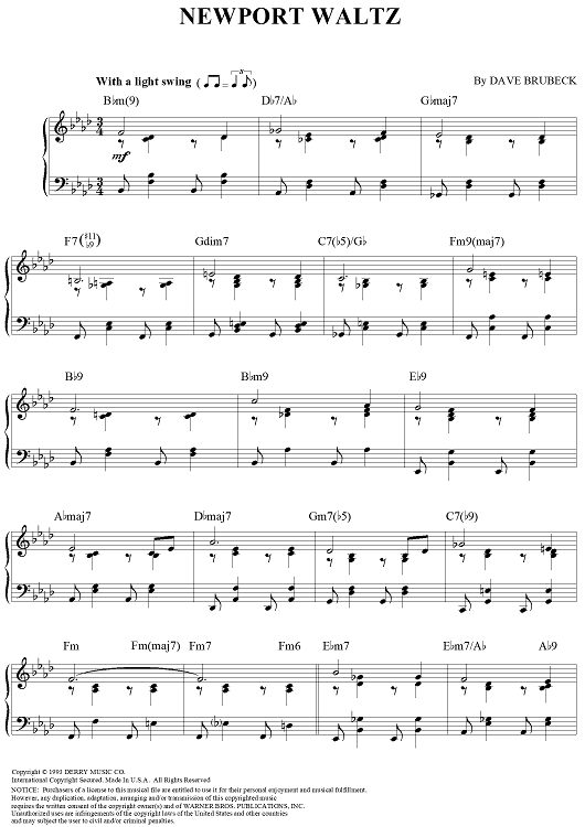 Digital Sheet Music for Newport Waltz by Dave Brubeck scored for Piano Solo; id:201422