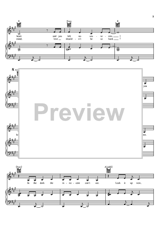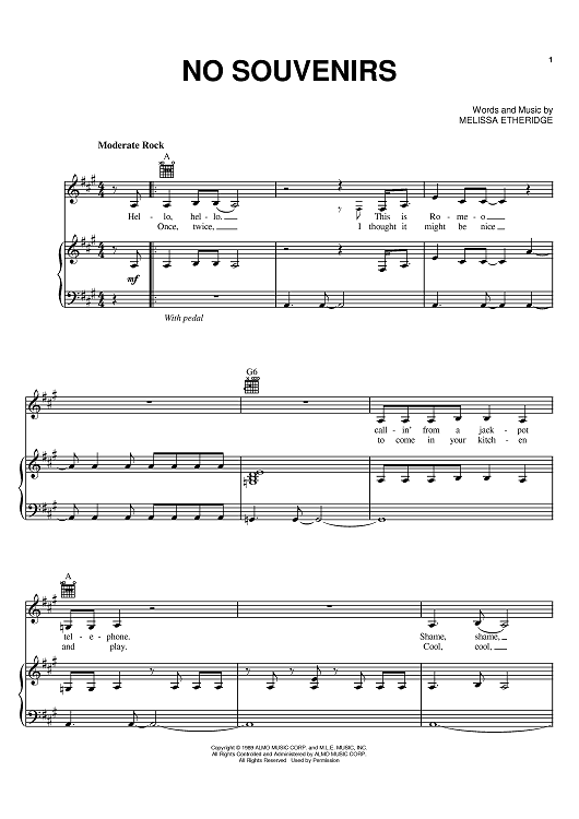 "No Souvenirs" Sheet Music by Melissa Etheridge