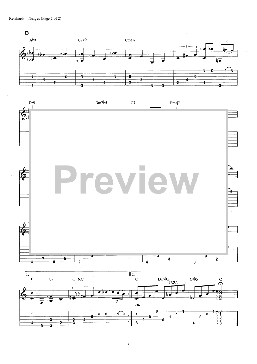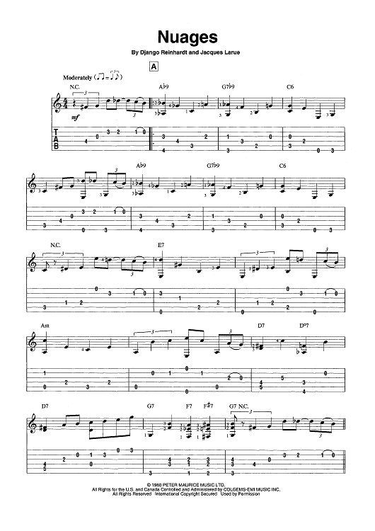 Digital Sheet Music for Nuages by Django Reinhardt, Jacques Larue scored for Guitar Tab/Vocal/Chords; id:443324