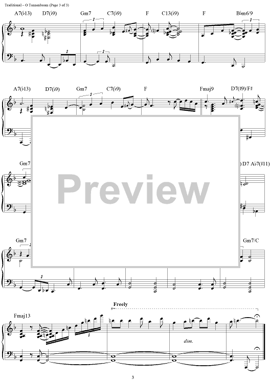 Digital Sheet Music for O Tannenbaum by Vince Guaraldi, Traditional scored for Piano Solo; id:261147
