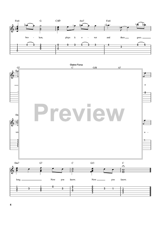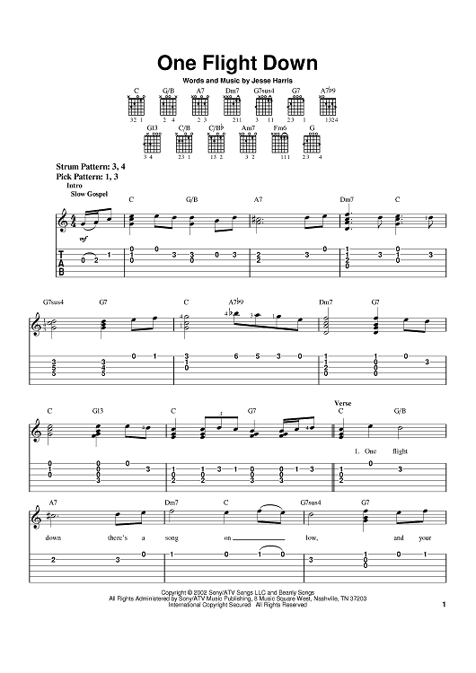 Digital Sheet Music for One Flight Down by Jesse Harris, Norah Jones scored for Easy Guitar Tab; id:371395
