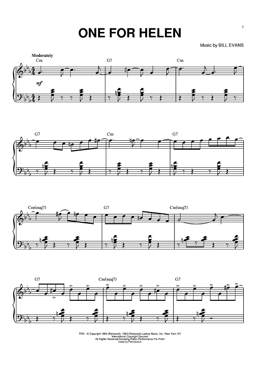 Digital Sheet Music for One For Helen by Bill Evans scored for Piano; id:381976