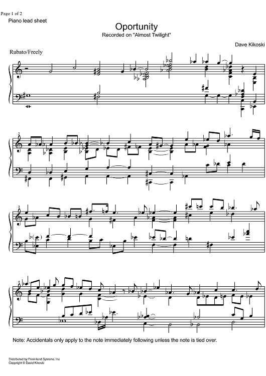 Digital Sheet Music for Oportunity by , Dave Kikoski scored for Lead Sheet; id:326648