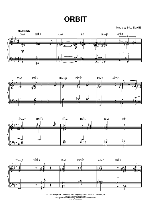 Digital Sheet Music for Orbit by Bill Evans scored for Piano; id:381981
