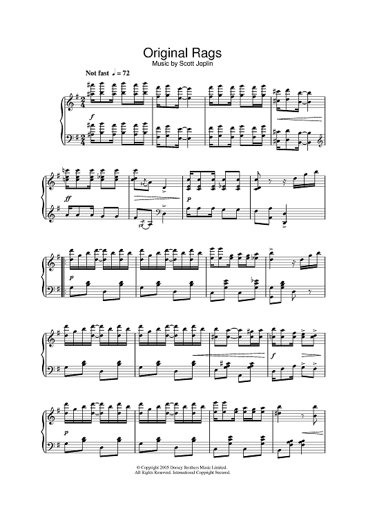 Digital Sheet Music for Original Rags by Scott Joplin scored for Piano; id:383272