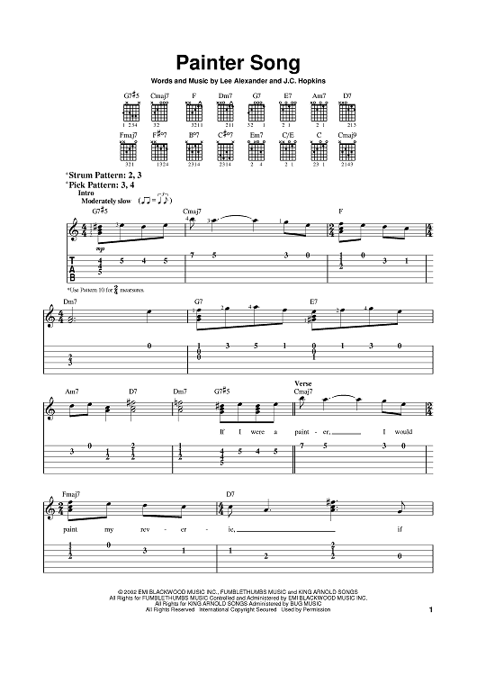 Digital Sheet Music for Painter Song by Norah Jones, Lee Alexander, J.C. Hopkins scored for Easy Guitar Tab; id:371402