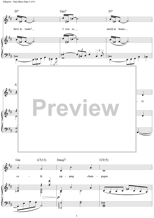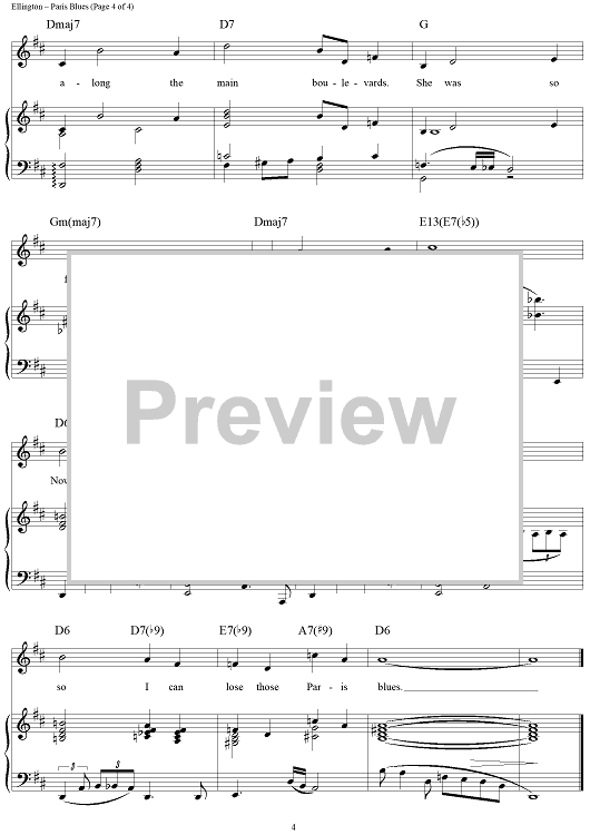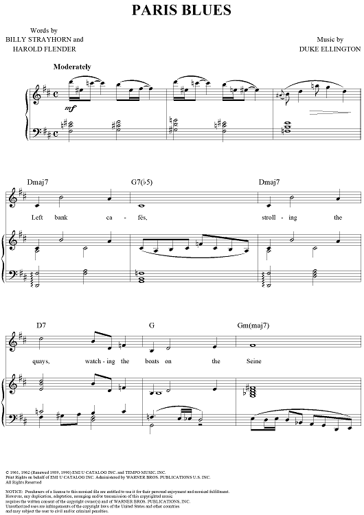 Digital Sheet Music for Paris Blues by Duke Ellington, Billy Strayhorn, Harold Flender scored for Piano/Vocal/Chords; id:125739