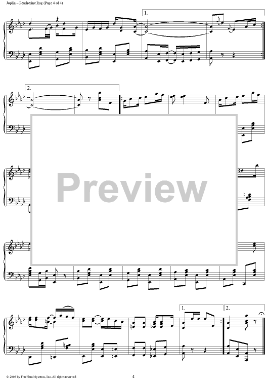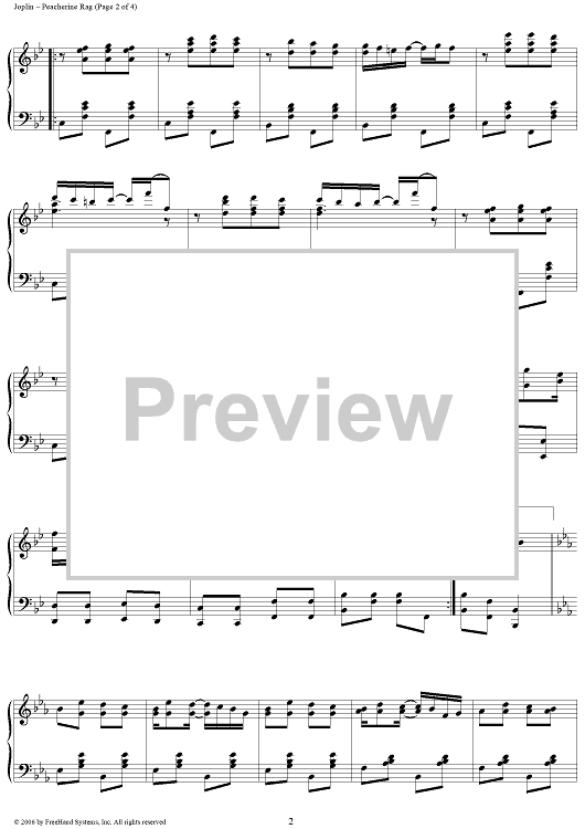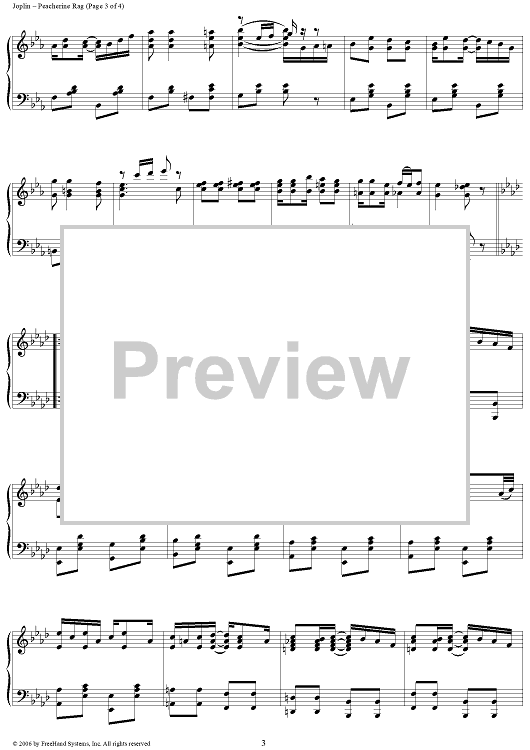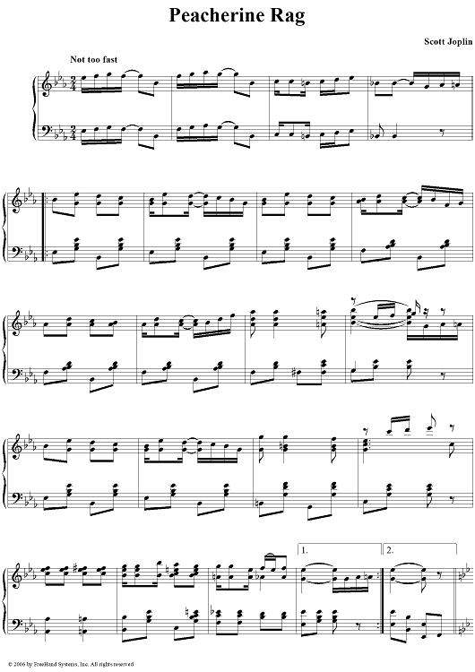 Digital Sheet Music for Peacherine Rag by Scott Joplin scored for Piano Solo; id:249708