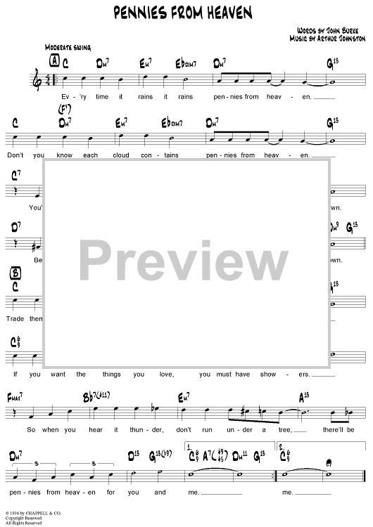Digital Sheet Music for Pennies From Heaven by Bing Crosby, Johnny Burke, Arthur Johnston scored for Lead Sheet; id:307519