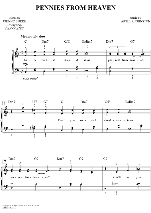 Digital Sheet Music for Pennies From Heaven by Dan Coates, Johnny Burke, Arthur Johnston scored for Easy Piano/Vocal/Chords; id:456676