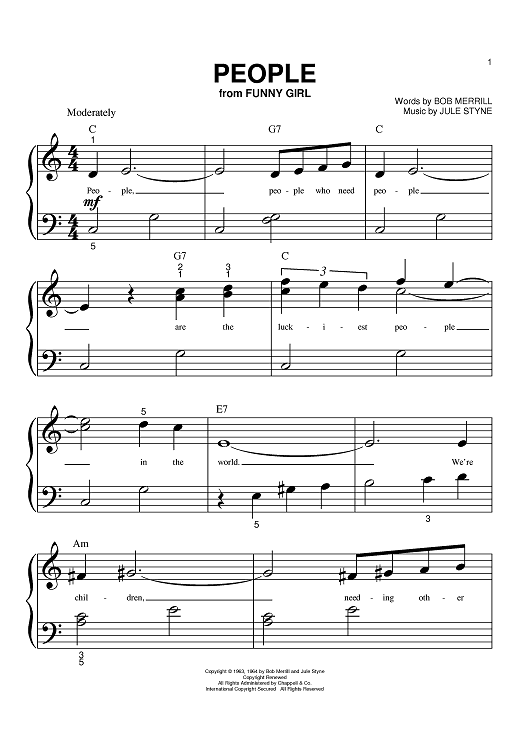 Digital Sheet Music for People by Jule Styne, Bob Merrill, Barbra Streisand scored for Big Note Piano; id:387658