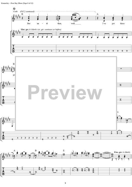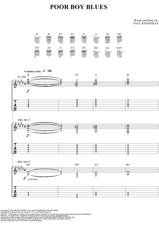Digital Sheet Music for Poor Boy Blues by Chet Atkins, Mark Knopfler, Paul Kennerley scored for Guitar Tab/Vocal; id:119550
