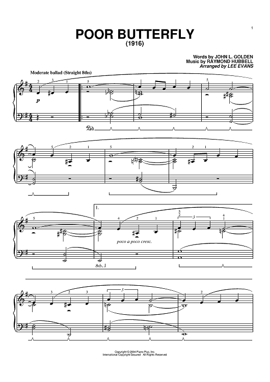 Digital Sheet Music for Poor Butterfly by Raymond Hubbell, John L. Golden scored for Piano; id:374386