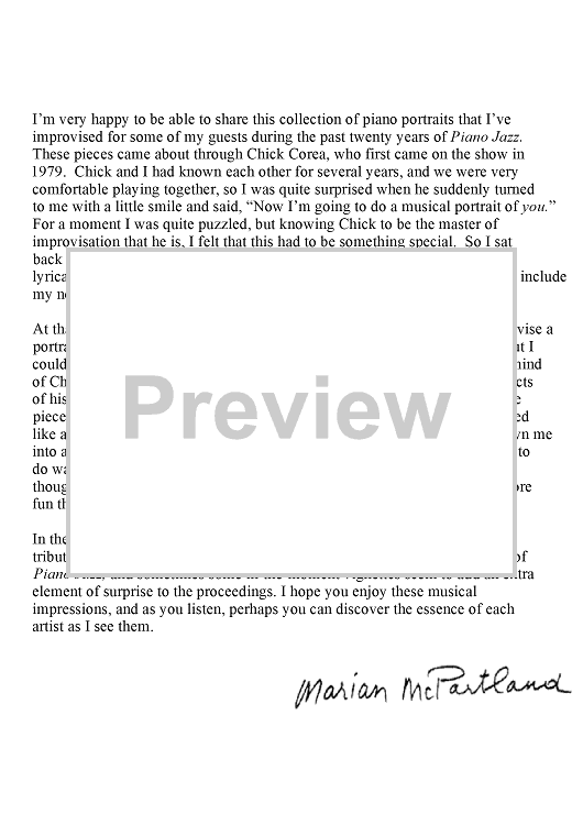 "Portraits - Introductory Notes" Sheet Music by Marian McPartland