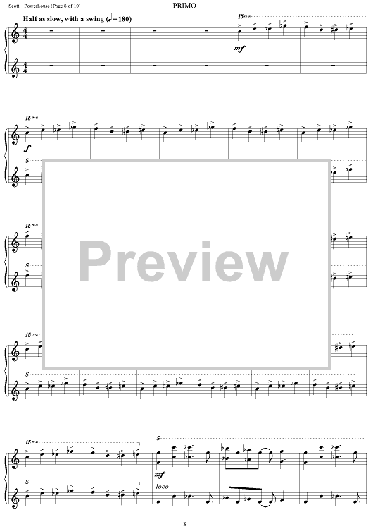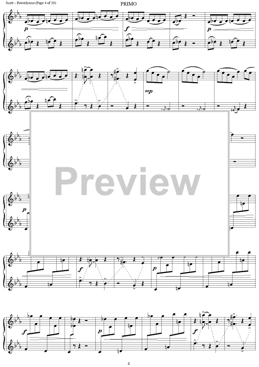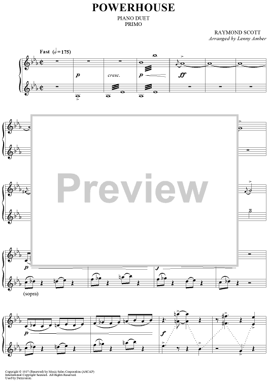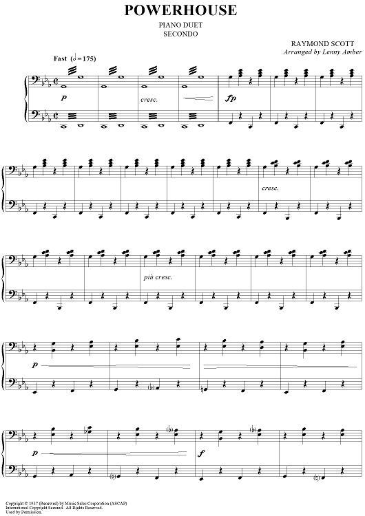Digital Sheet Music for Powerhouse by Raymond Scott, Lenny Amber scored for 1 Piano, 4 Hands; id:430148