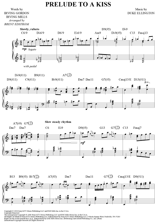 Digital Sheet Music for Prelude To A Kiss by Duke Ellington, Irving Mills, Irving Gordon, Brent Edstrom scored for Piano Solo; id:464819
