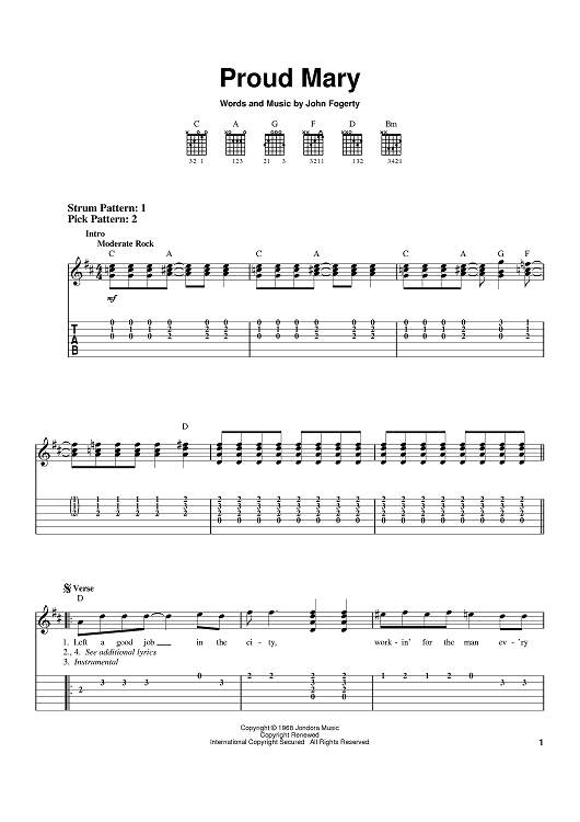 Digital Sheet Music for Proud Mary by John Fogerty, Creedence Clearwater Revival, Ike & Tina Turner scored for Easy Guitar Tab; id:387522