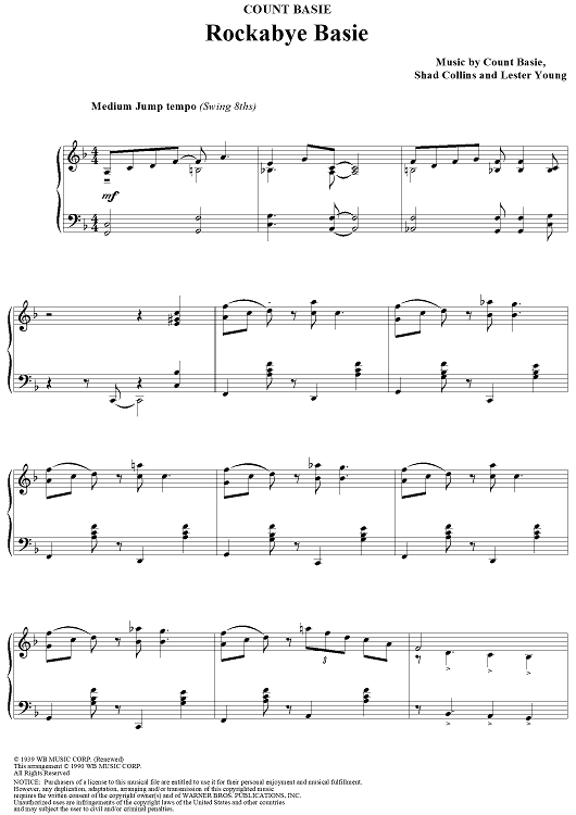 Digital Sheet Music for Rockabye Basie by Count Basie, Shad Collins, Lester Young scored for Piano Solo; id:109906