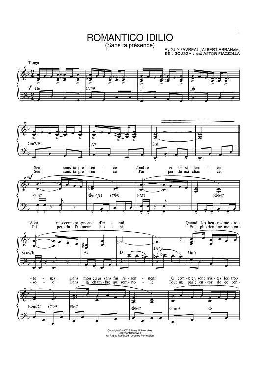Digital Sheet Music for Romantico Idilio (Sans ta presence) by Albert Abraham, Guy Favreau, Astor Piazzolla, Ben Soussan scored for Piano; id:388859