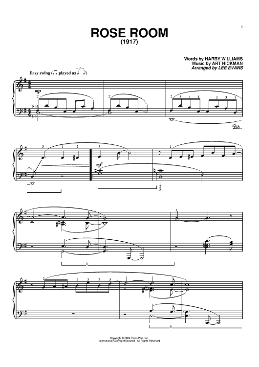 Digital Sheet Music for Rose Room by Art Hickman, Harry Williams scored for Piano; id:374388