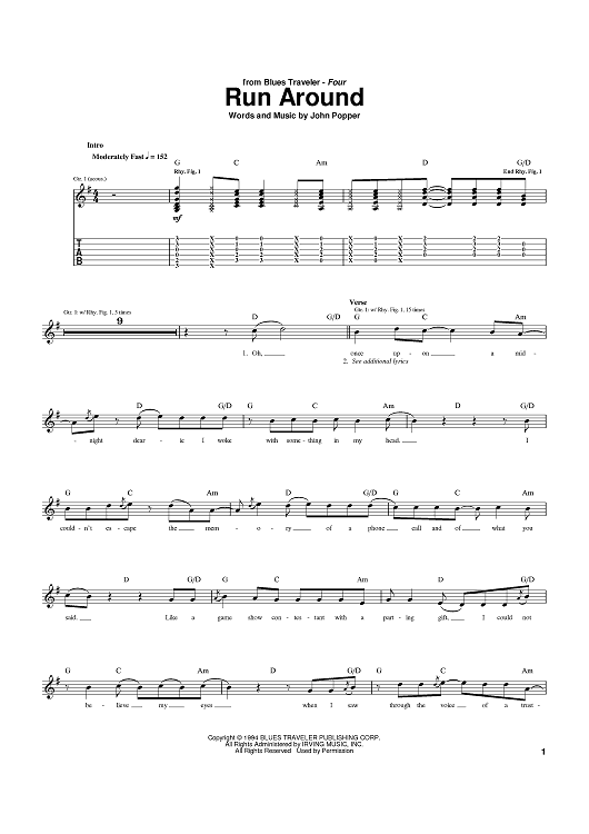 Digital Sheet Music for Run Around by Blues Traveler, John Popper scored for Guitar Tab; id:370976