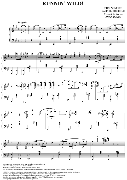 Digital Sheet Music for Runnin' Wild! by Dick Winfree, Phil Boutelje, Rube Bloom scored for Piano Solo; id:355067