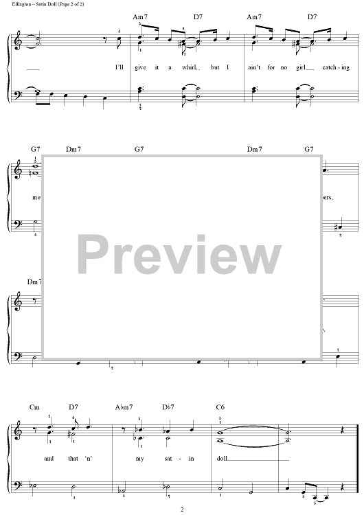 Digital Sheet Music for Satin Doll by Johnny Mercer, Duke Ellington, Billy Strayhorn, John Brimhall scored for Easy Piano/Vocal; id:118947