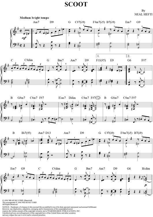Digital Sheet Music for Scoot by Neal Hefti scored for Piano Solo; id:235012