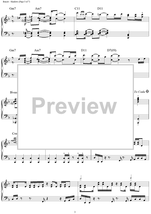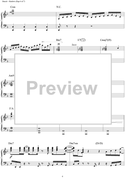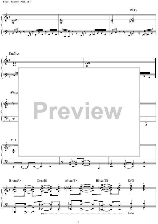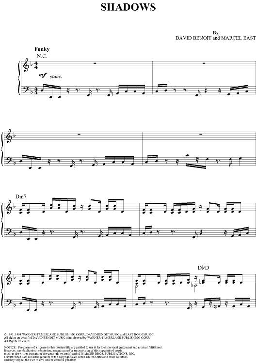 Digital Sheet Music for Shadows by David Benoit, Marcel East scored for Piano Solo; id:275466
