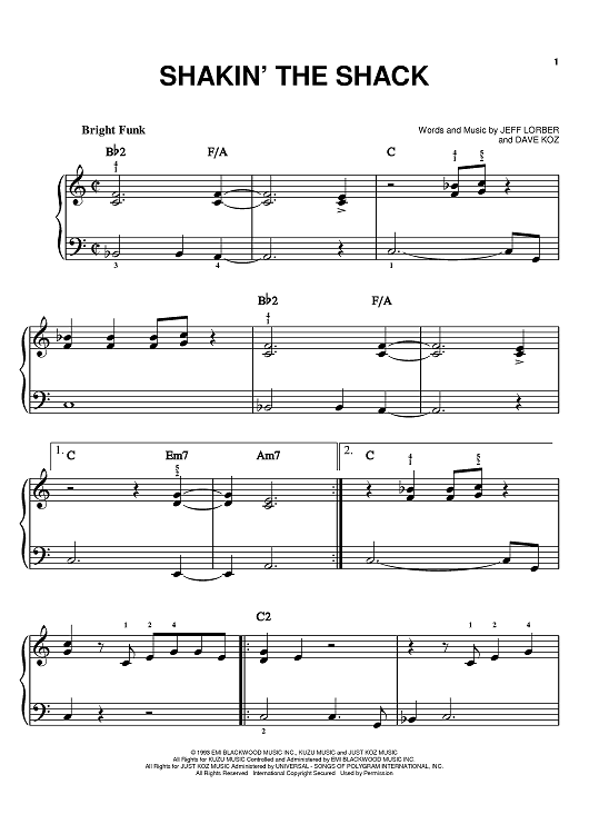 Digital Sheet Music for Shakin' The Shack by Dave Koz, Jeff Lorber scored for Easy Piano; id:371954