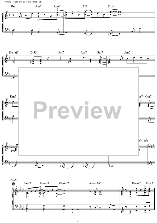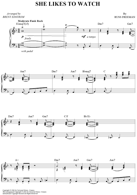 Digital Sheet Music for She Likes To Watch by Russ Freeman, Brent Edstrom scored for Piano Solo; id:465285
