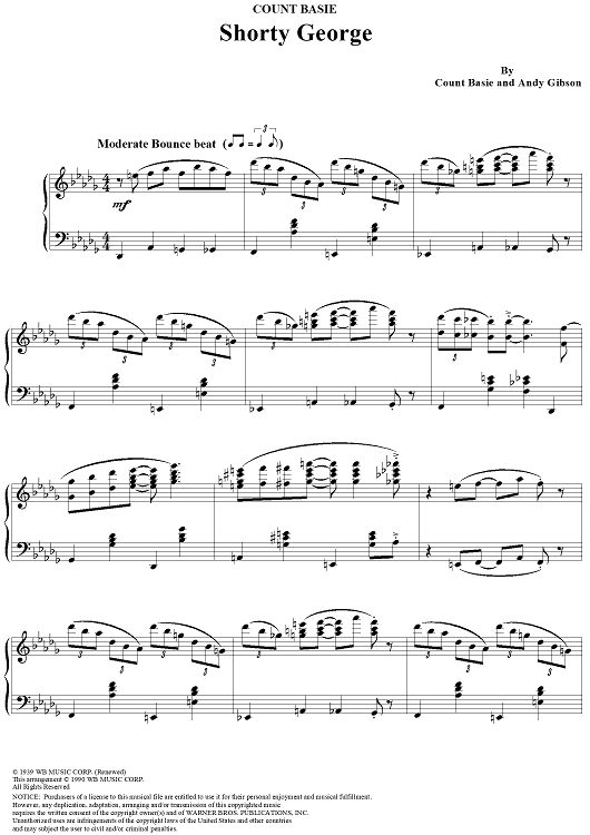 Digital Sheet Music for Shorty George by Count Basie, Andy Gibson scored for Piano Solo; id:111785