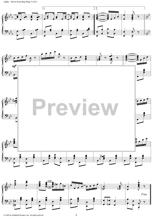 Digital Sheet Music for Silver Swan Rag by Scott Joplin scored for Piano Solo; id:249713